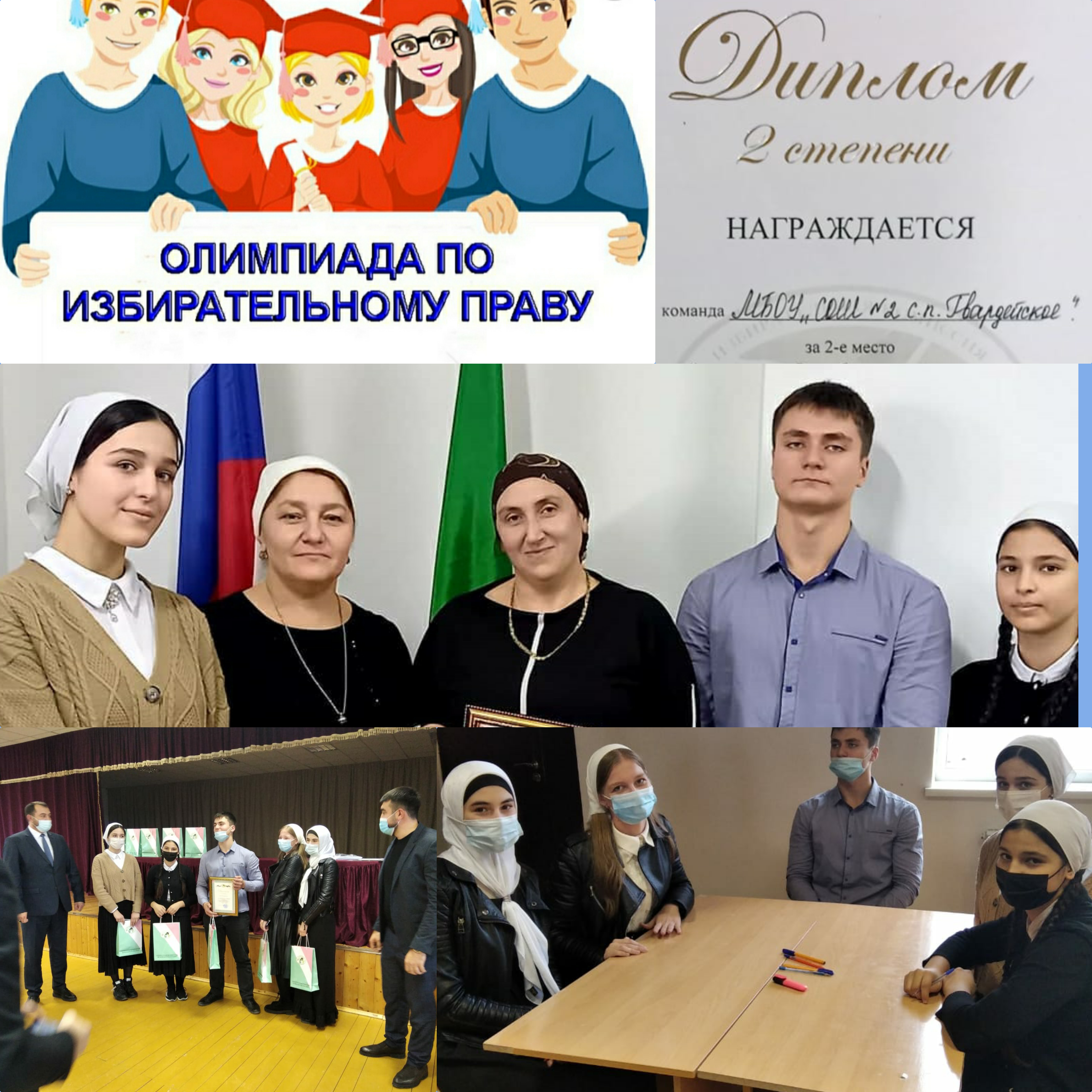 21.11.2020Команда нашей школы награждена Дипломом 2 степени избирательной комиссией Чеченской Республики,за 2 место в районном этапе Республиканской олимпиады по избирательному праву среди старшеклассников общеобразовательных организаций Надтеречного района.