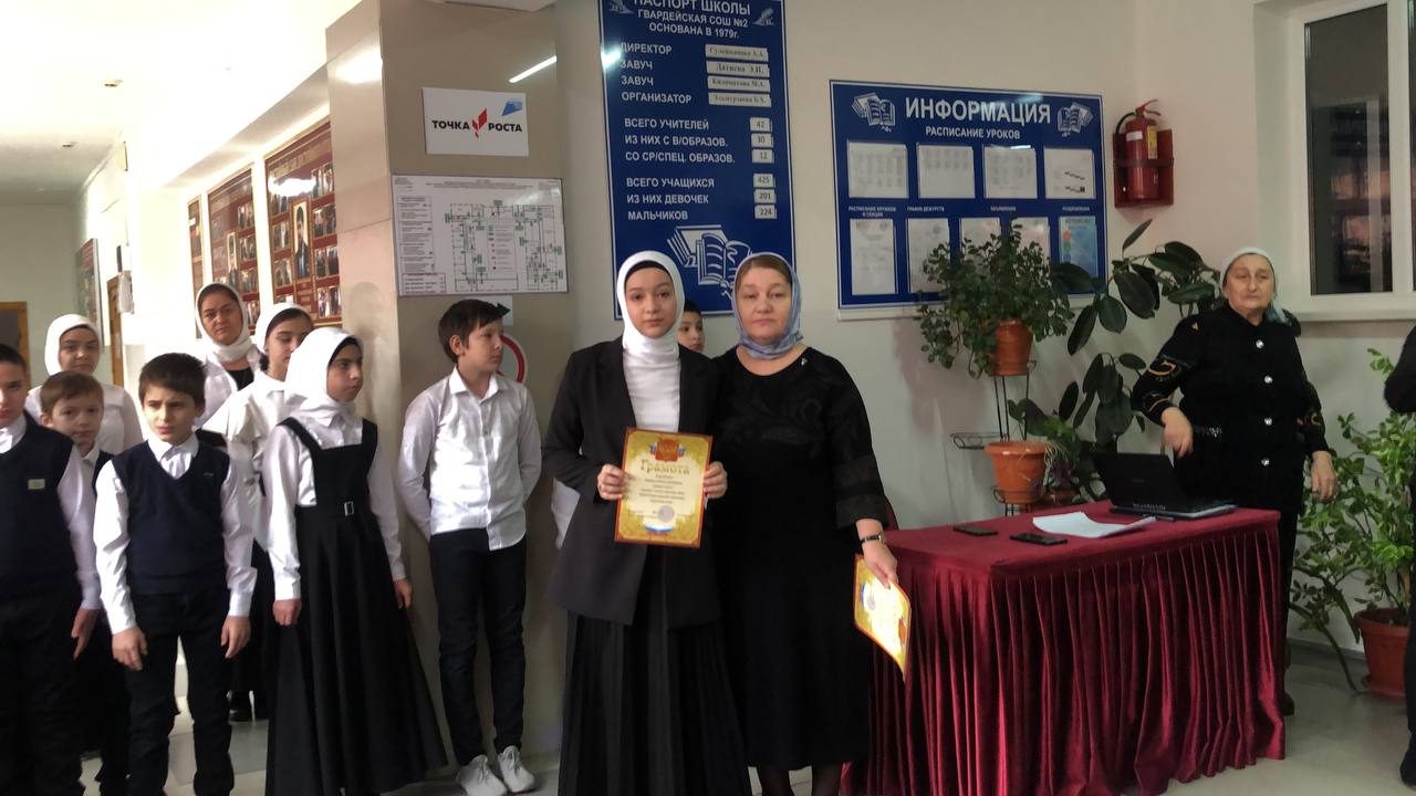 В МБОУ «СОШ 2 с.п. Гвардейское им. А. Мальсагова» 21.11.22г. провели еженедельную линейку, поднятия государственного флага РФ и ЧР. После церемонии поднятия государственных флагов РФ и ЧР, директор школы Сулейманова Асет Абуевна вручила грамоты.