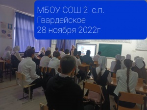 В МБОУ «СОШ 2 с.п. Гвардейское им. А.Мальсагова»Дубаева Петимат Салмановна представитель Уполномоченного по правам человека в ЧР в Надтеречном муниципальном районе, 28 ноября 2022г. провела Всероссийский урок " Права человека".