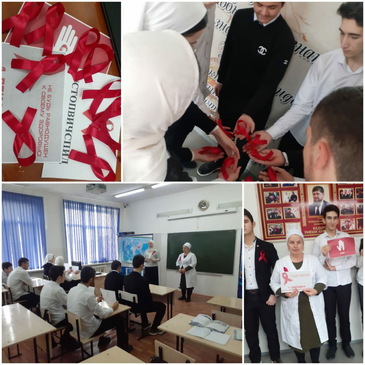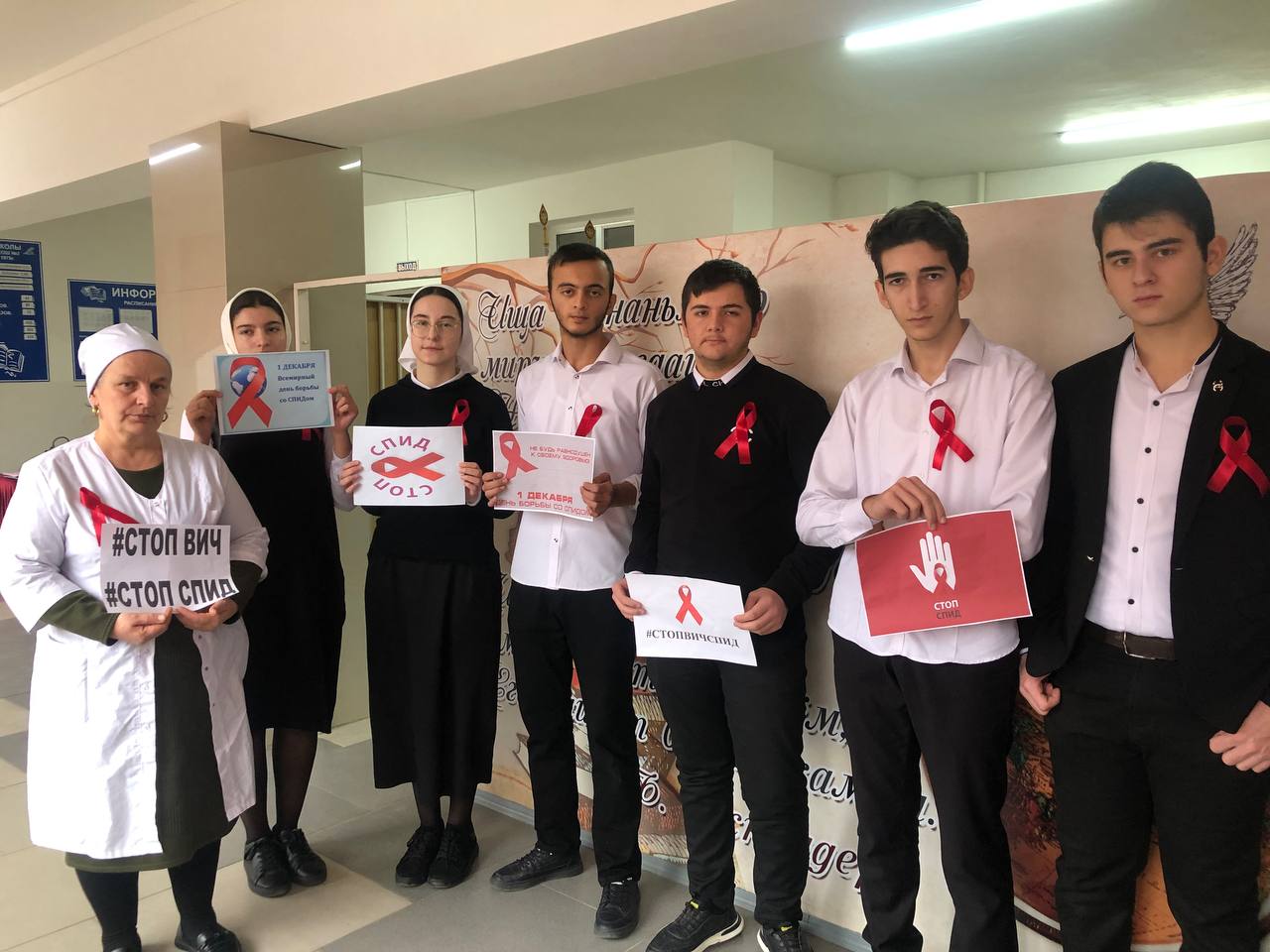 01.12.20221.12.2022г .в МБОУ"СОШ2с.п.Гвардейское им А.Мальсагова" в 10 классе провели единую акцию ."Всемирный день борьбы со спидом" педагог-психолог Алсабекова Т.Х., медсестра Актемирова Ф. и социальный педагог Каримова Б.М. с целью сформировать ответственное отношение к своему здоровью и здоровью окружающих.