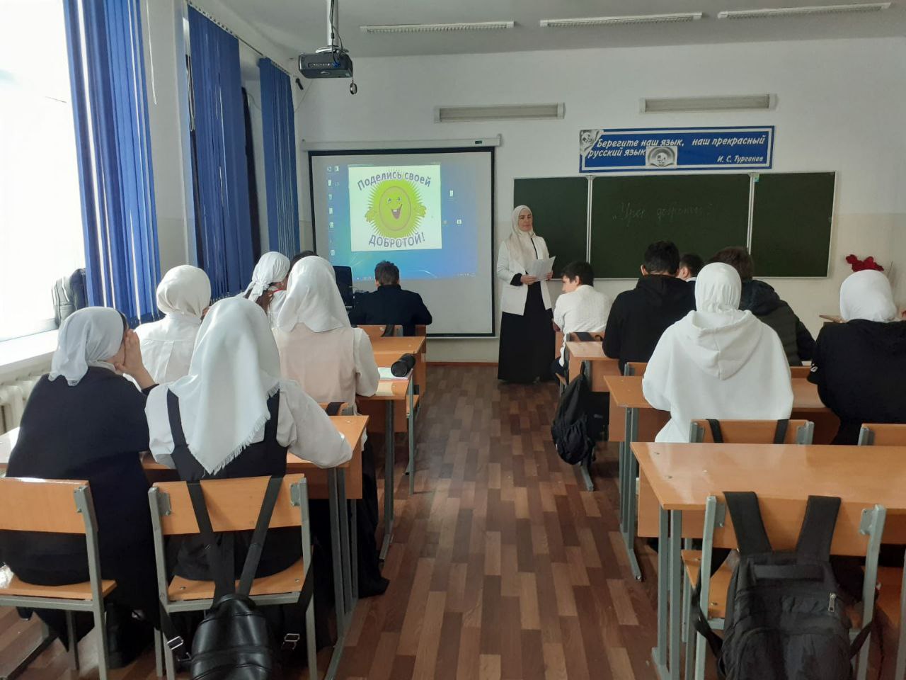 06.12.2022В рамках проведения «Урока доброты» 6 декабря 2022г. социальный-педагог Каримова Билкиса Мовсаровна, психолог Алсамбекова Табарик Хусейновна с учащимися с 1-11 классов провела различные мероприятия, целью проведения которых было: