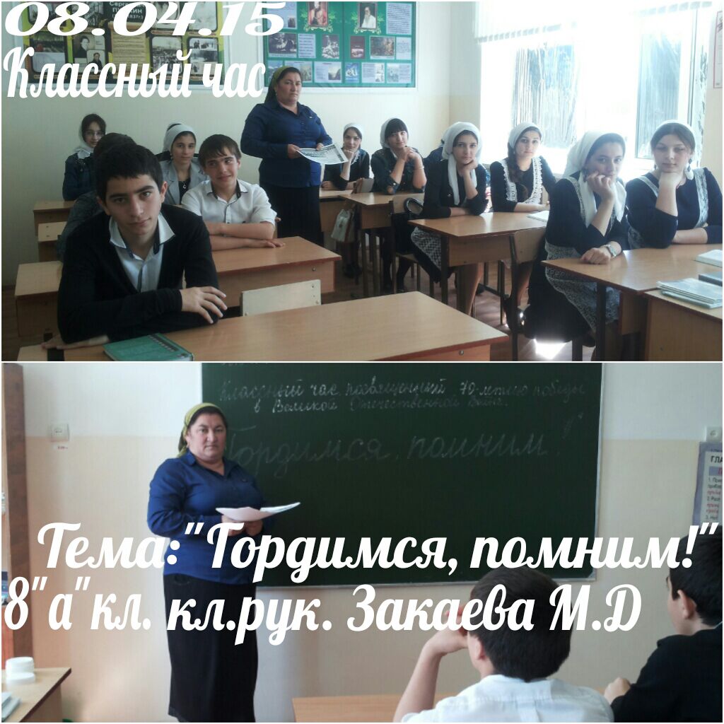 Классный час прошел в 8 "а" классе. кл. рук. Закаева М.Д.