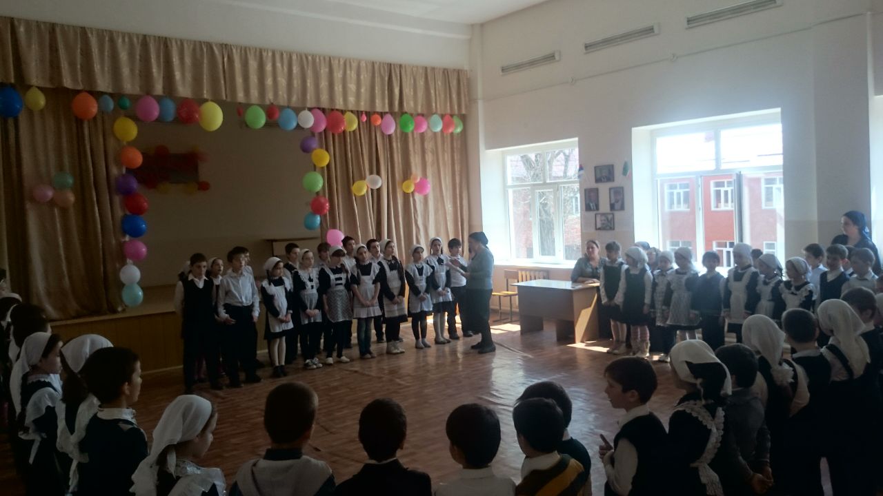 Празднование Дня Мира в Чеченской Республике.В школе прошло мероприятие. Ответственный 4"б" класс. Кл. рук. Магомадова Х. Т.